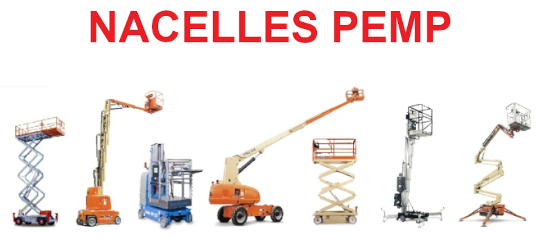 Une nacelle PEMP est un engin permettant de travailler en hauteur, en hauteur variable, pour des opérations comme l’entretien, l’installation ou la maintenance.
