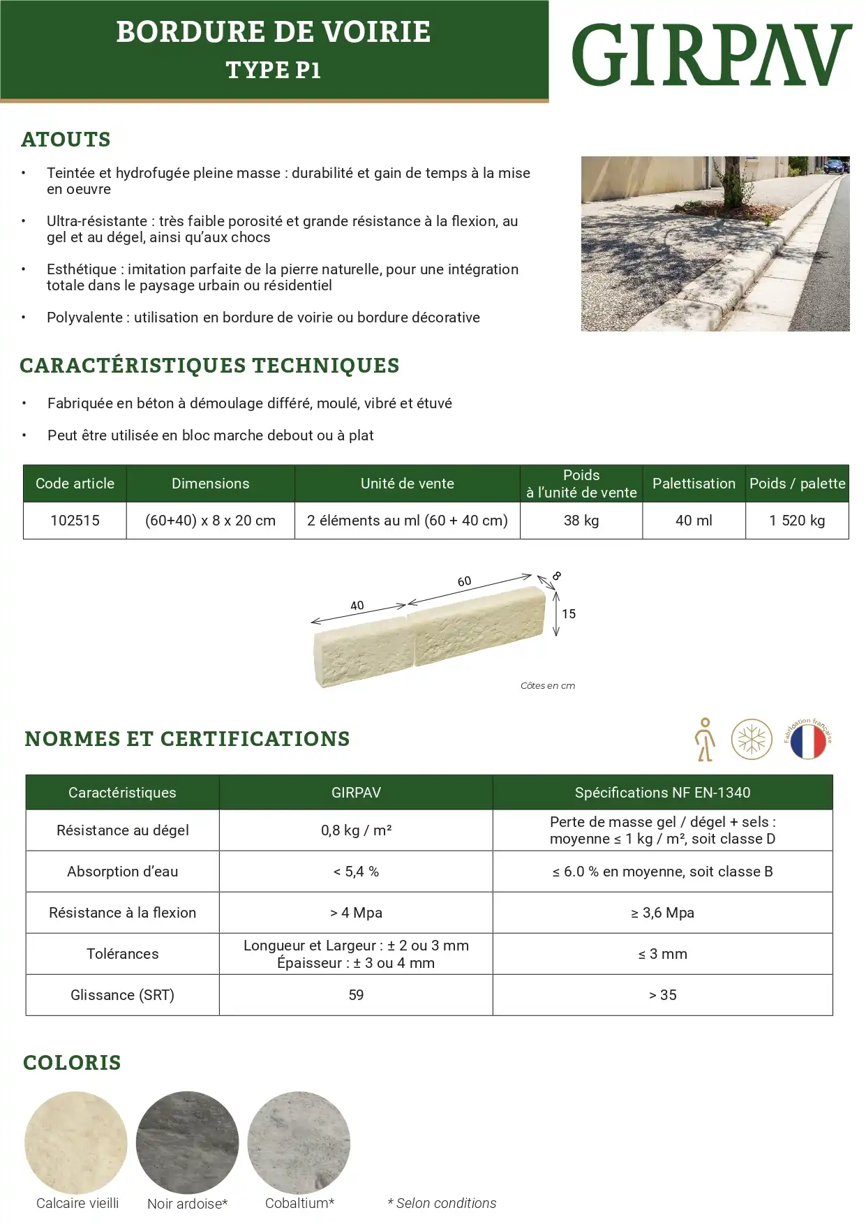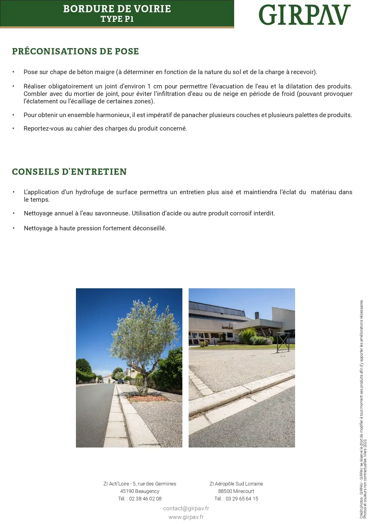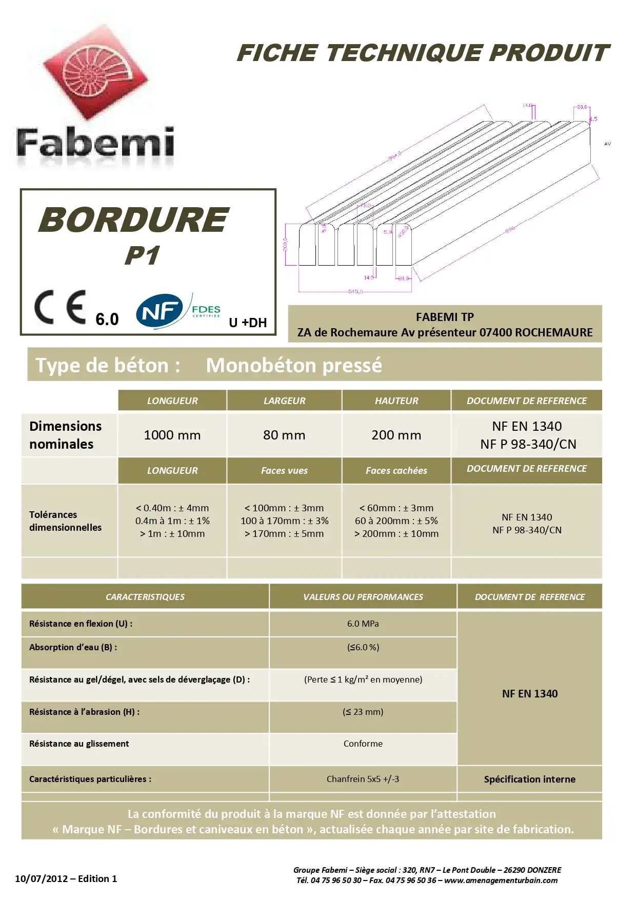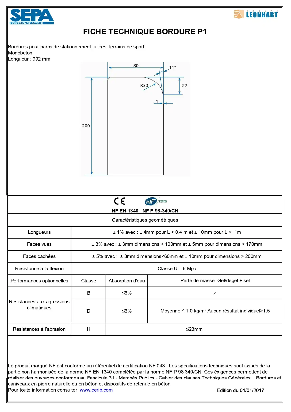 Fiche Technique Bordure P1 à télécharger gratuitement