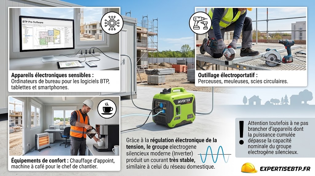Que peut-on brancher sur un groupe électrogène silencieux ?