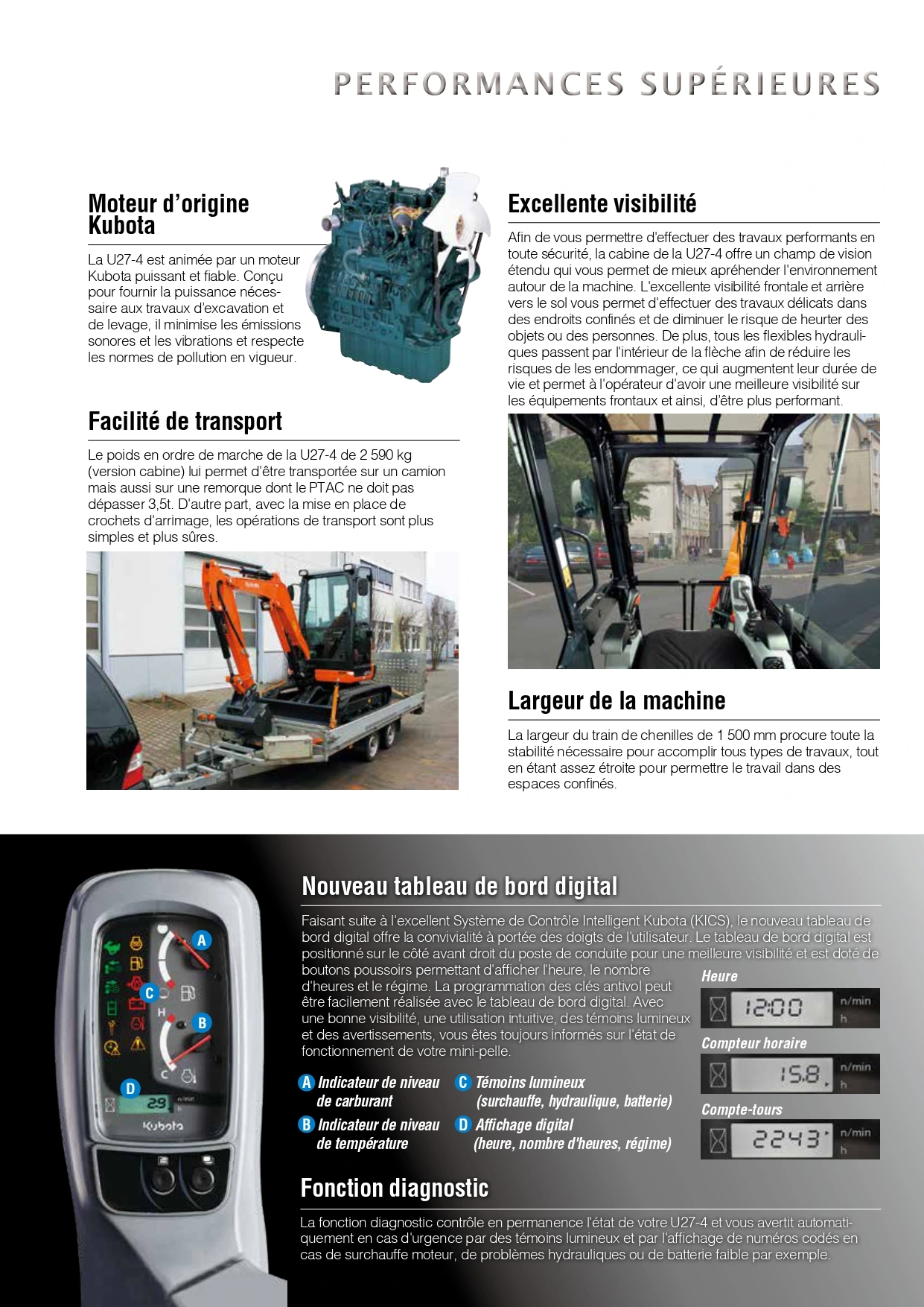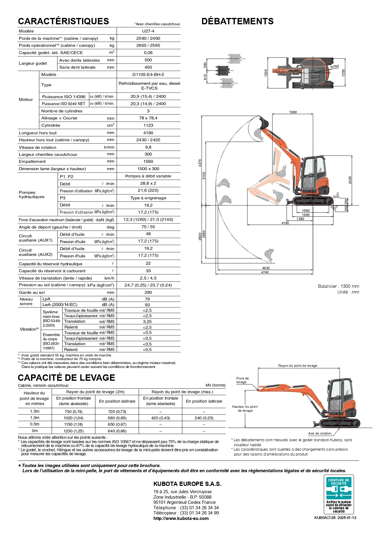Mini Pelle Kubota u27-4 Fiche technique PDF à télécharger