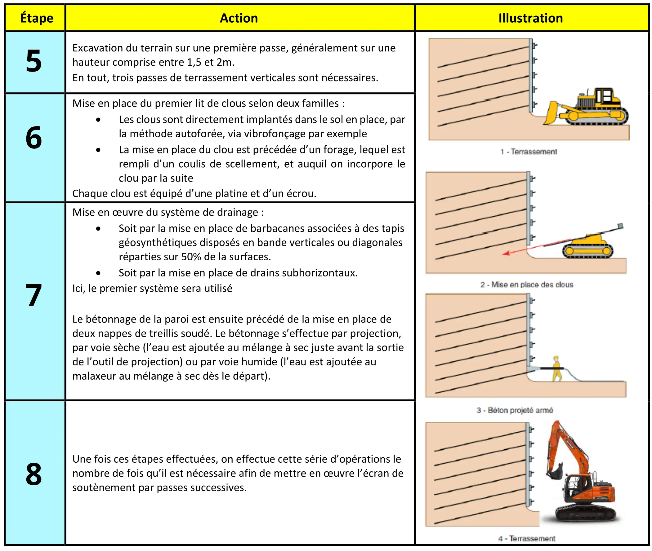 • Comment se déroule sa réalisation ? (matériaux, matériel, phasage, clouage, béton projeté)